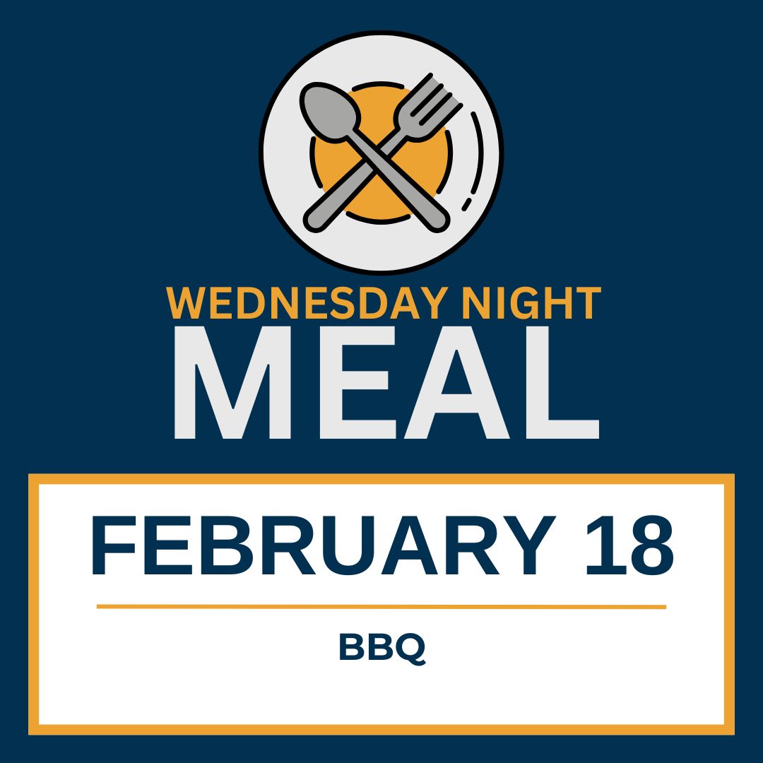 Wednesday Night Meals are in our Fellowship Hall at 5:30 PM before Bible study.